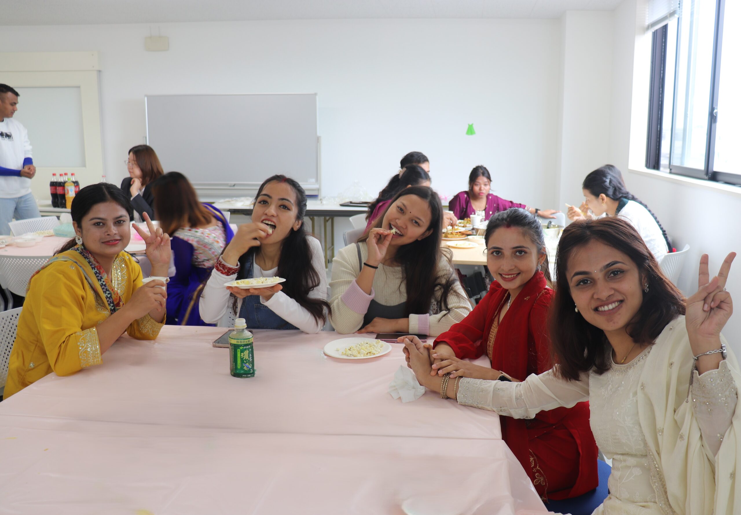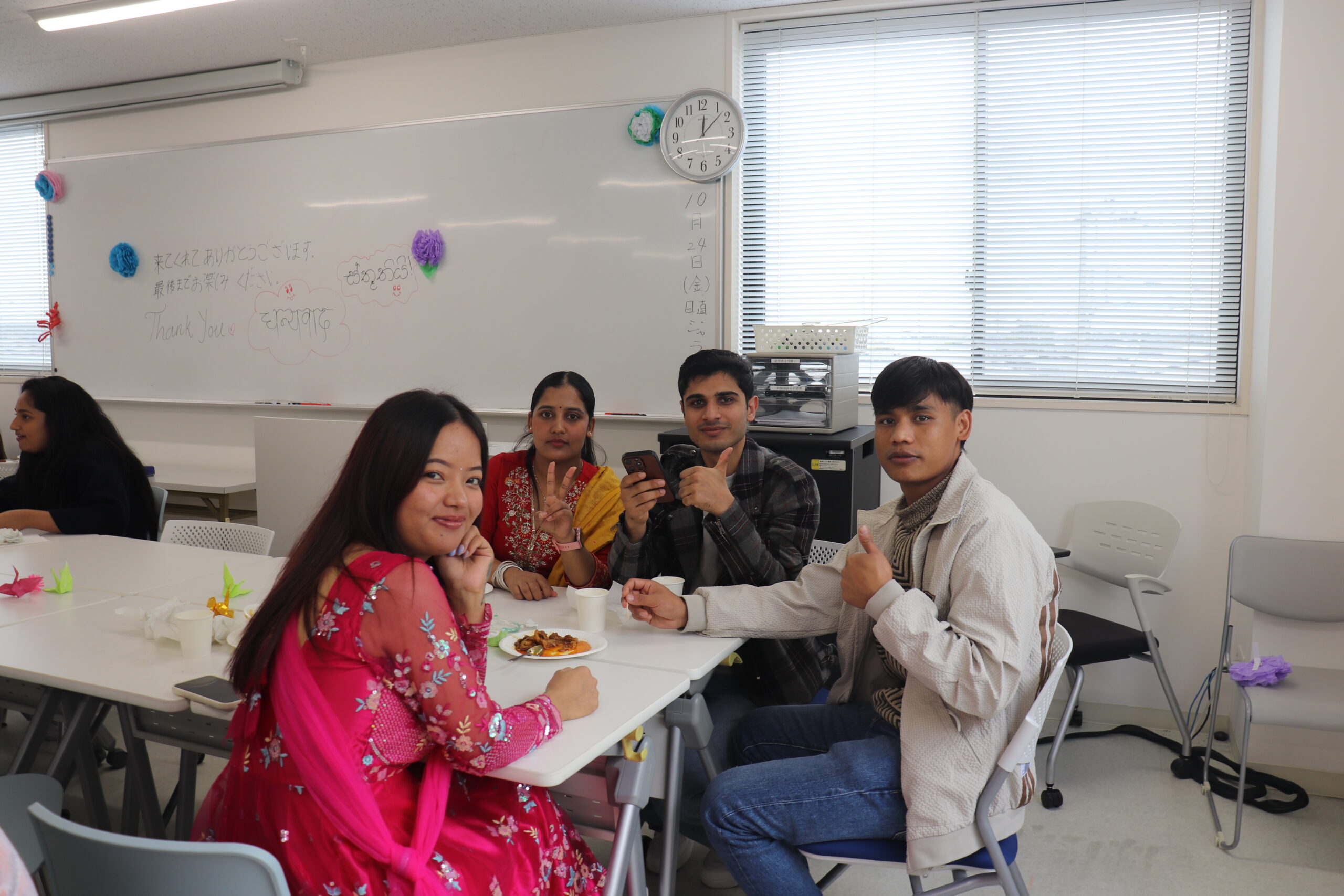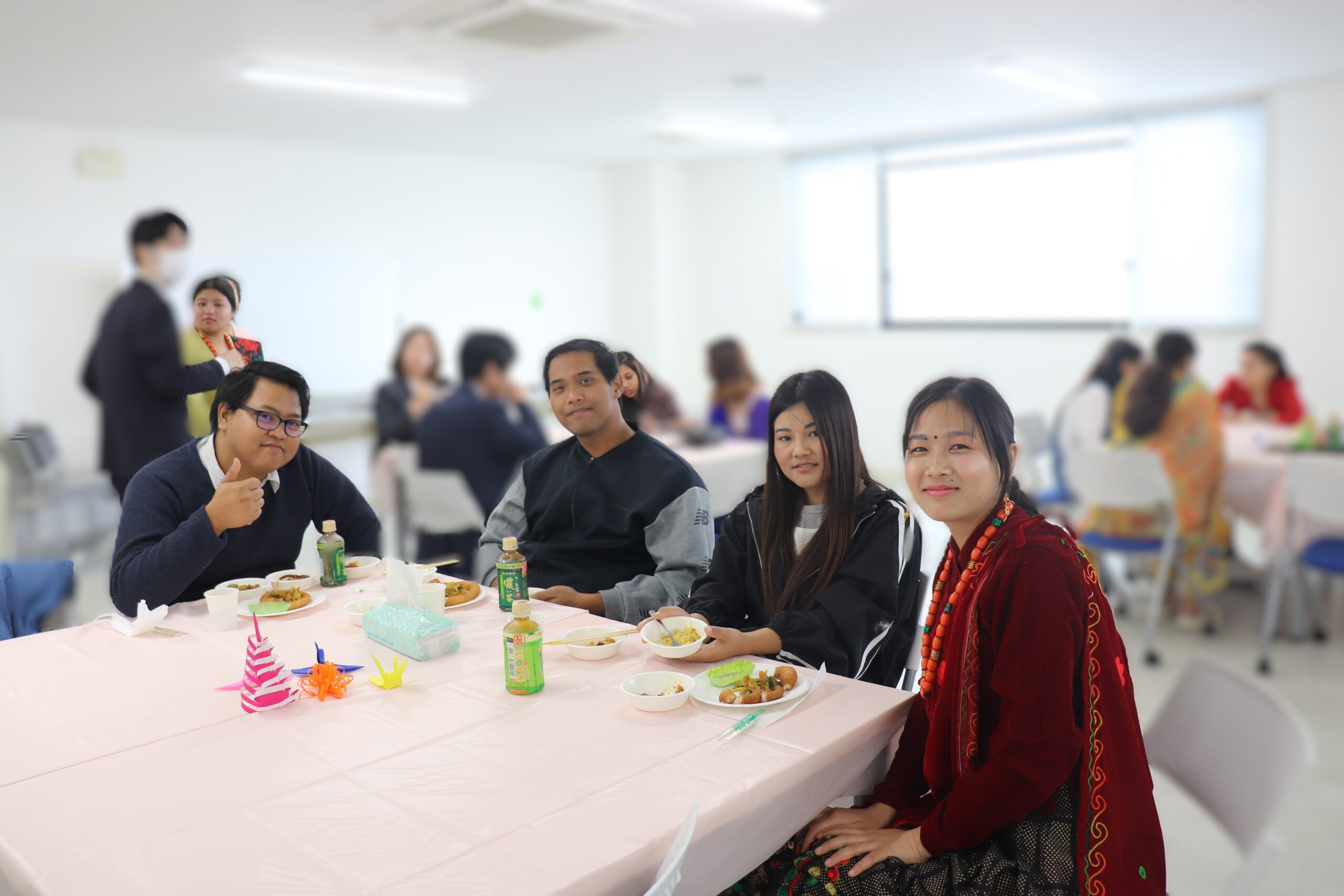 交流会を行いました☆異文化交流と恩師・上司・先輩へ感謝を届けよう☆_2025.10.24 2025/10/31 お世話になった日本語学校の先生方、アルバイト先の施設の皆さま、卒業生の皆さまをお招きし、学生からの感謝の気持ちを伝えるためのイベントを開催いたしました。 母国の料理を振る舞ったり、ダンスを披露したり、飾り付けをしたりと、それぞれの学生が役割を持って準備を進めてきました。 お忙しい中、ご参加いただきました皆さまには心より感謝申し上げます。 卒業生にも来ていただきました。