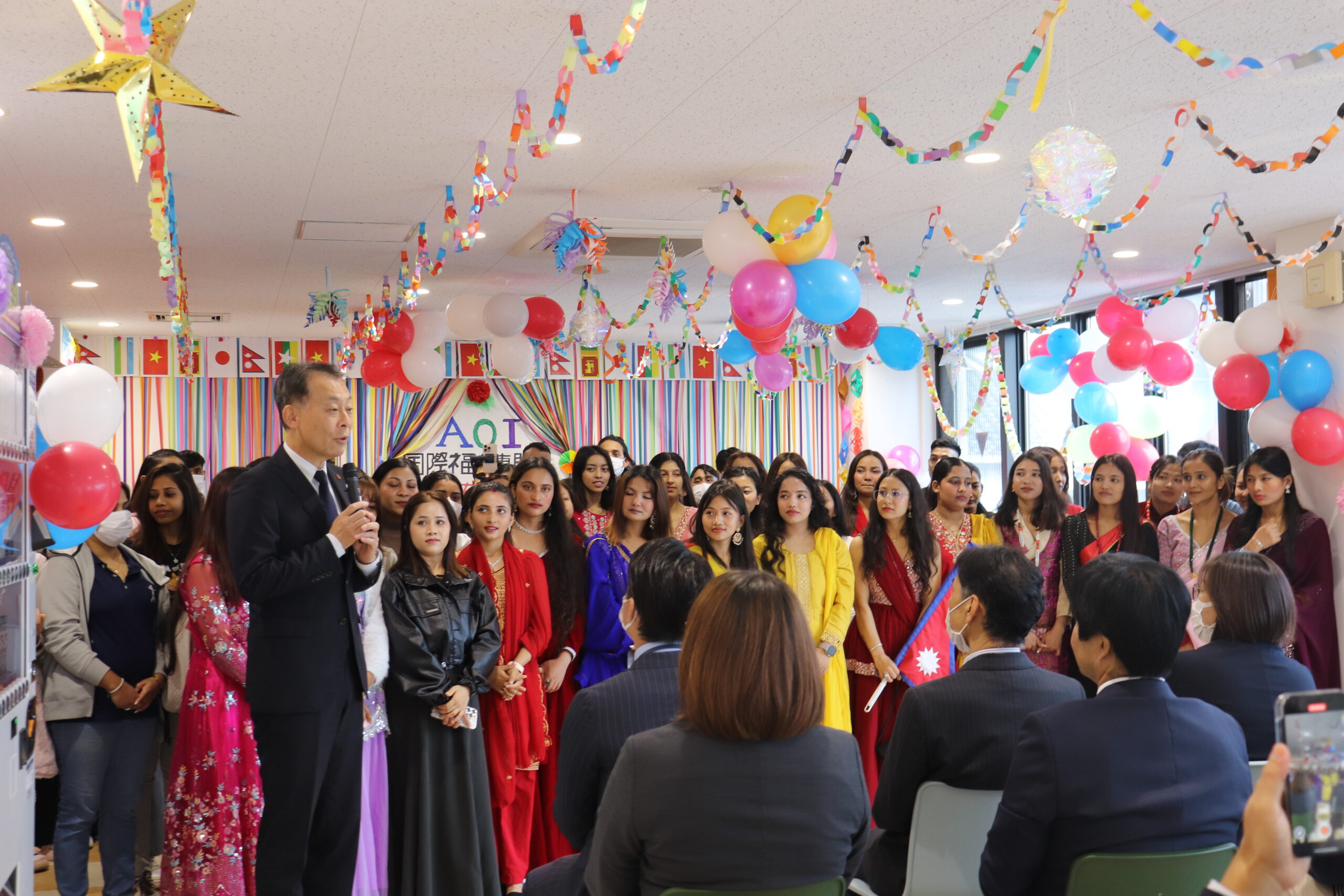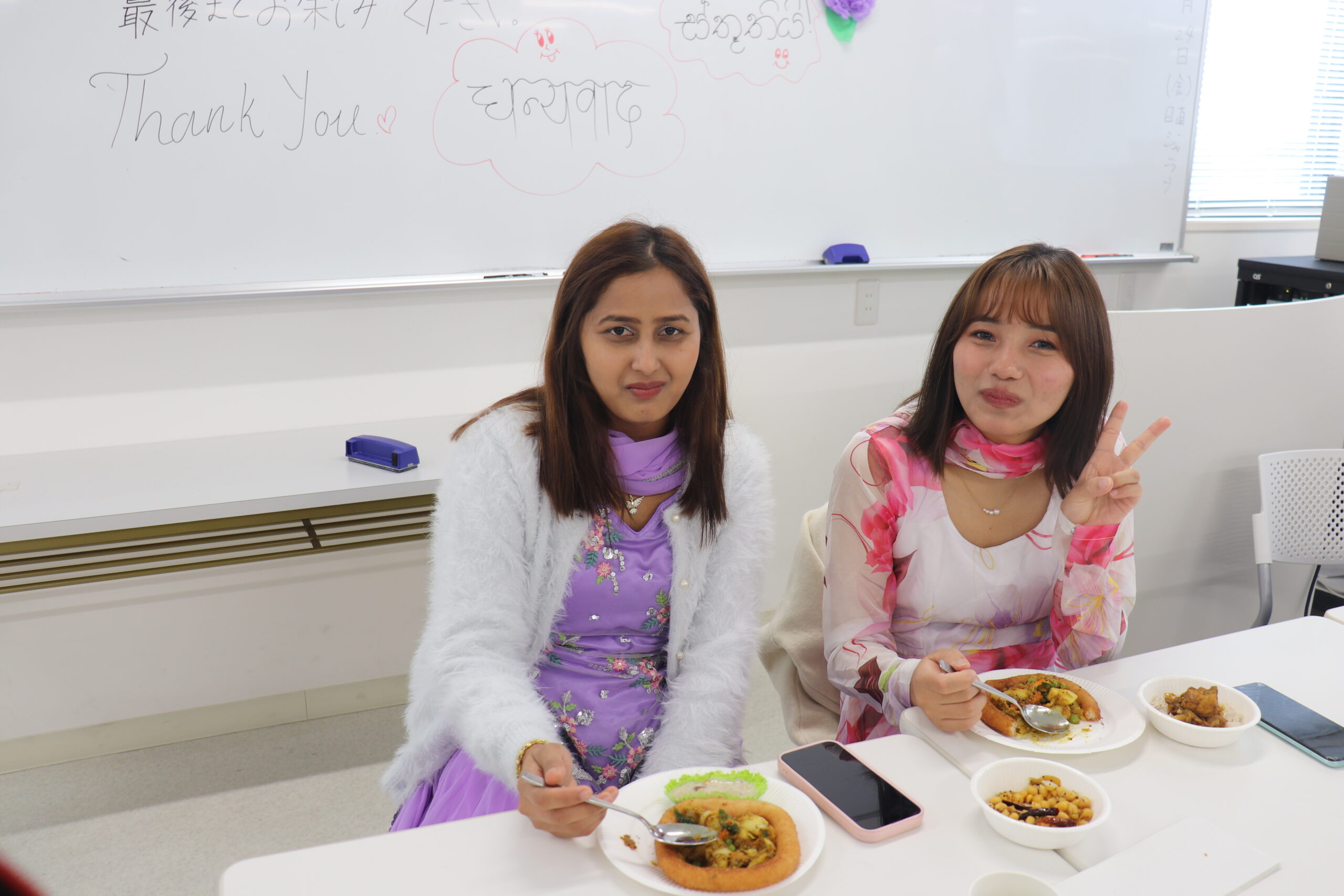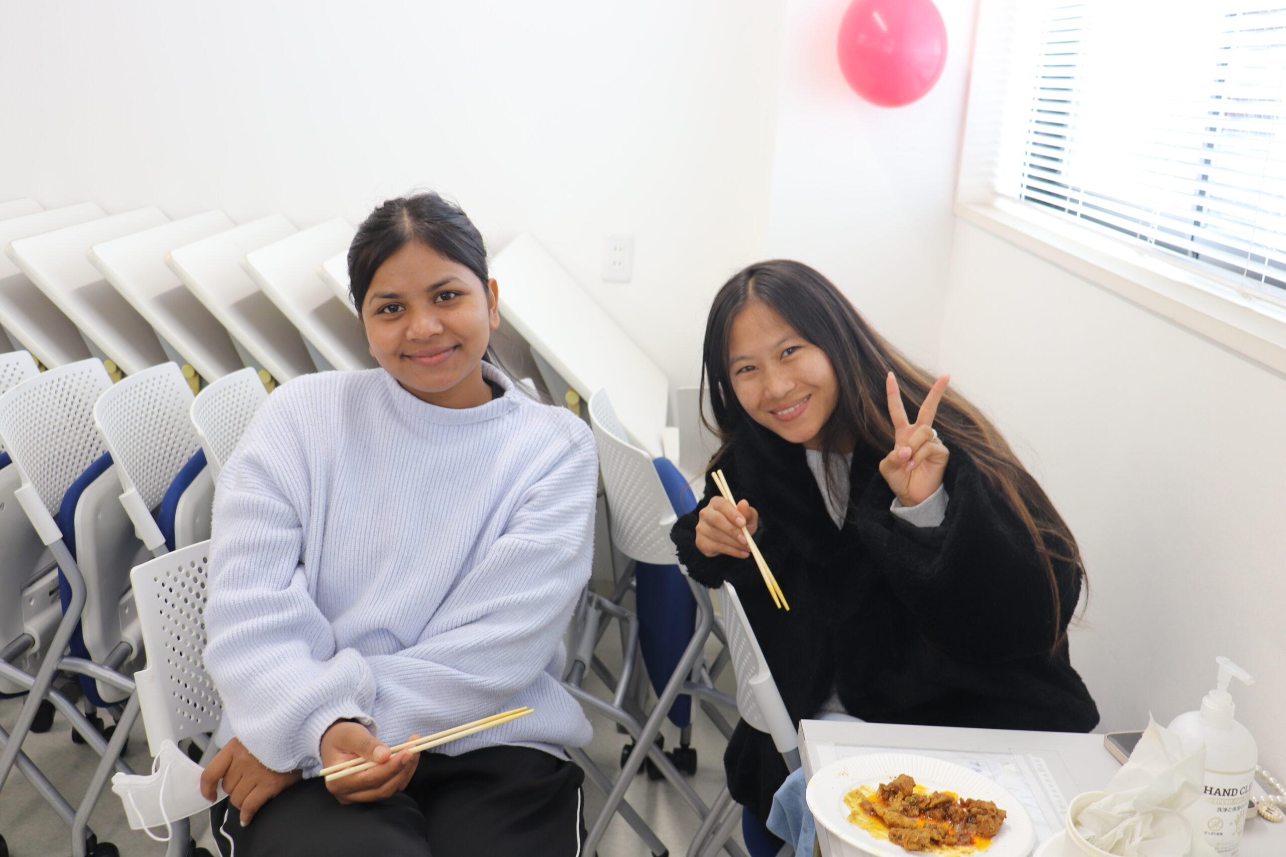 交流会を行いました☆異文化交流と恩師・上司・先輩へ感謝を届けよう☆_2025.10.24 2025/10/31 お世話になった日本語学校の先生方、アルバイト先の施設の皆さま、卒業生の皆さまをお招きし、学生からの感謝の気持ちを伝えるためのイベントを開催いたしました。 母国の料理を振る舞ったり、ダンスを披露したり、飾り付けをしたりと、それぞれの学生が役割を持って準備を進めてきました。 お忙しい中、ご参加いただきました皆さまには心より感謝申し上げます。 卒業生にも来ていただきました。